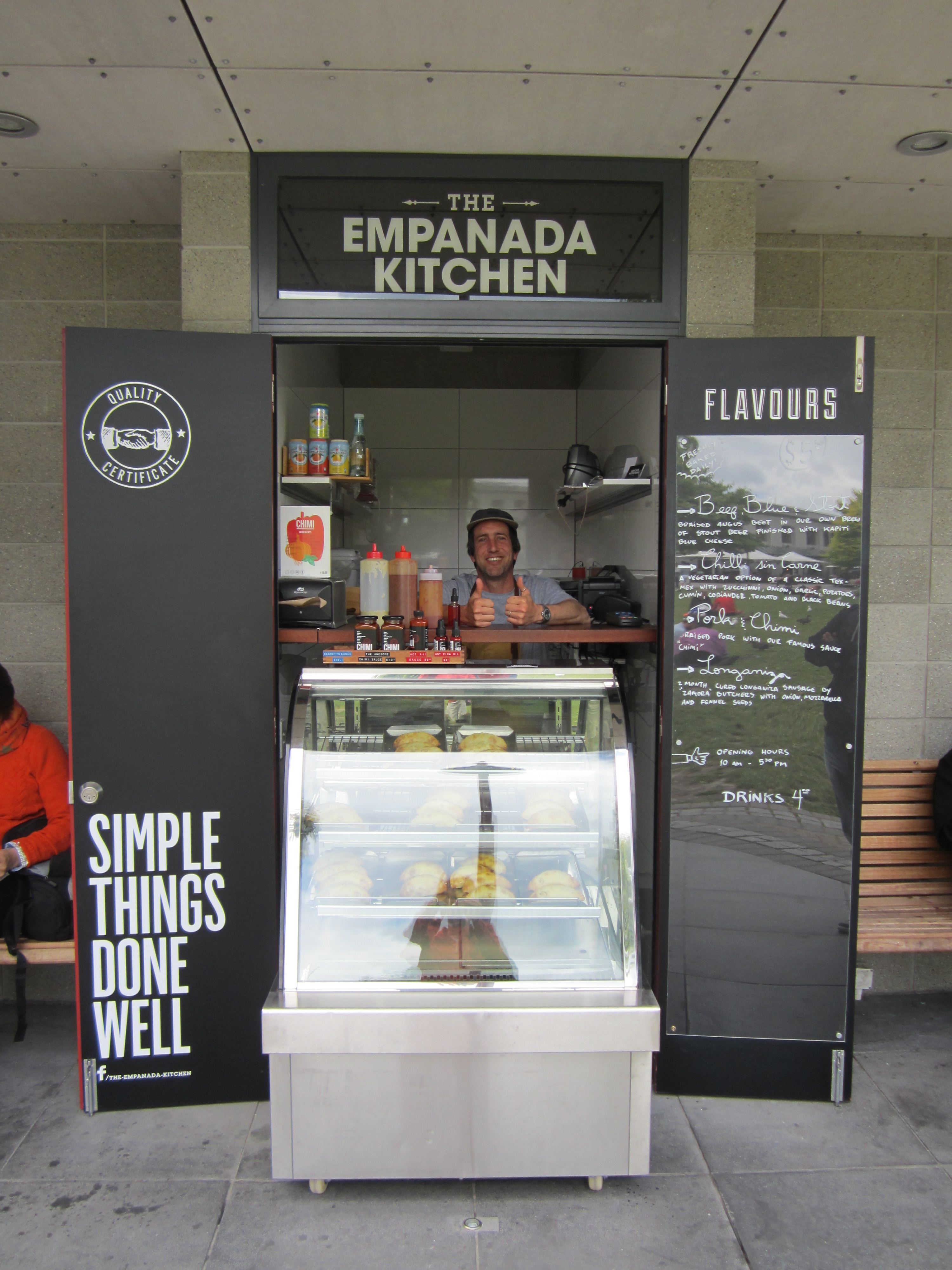 Olen viettänyt viikon Argentiinassa, mutta nämä empanadat ovat parhaita, mitä olen koskaan syönyt – missään. Omistaja on Mauro Viale. Hän ei ainoastaan tee upeita empanadoja, vaan hän on myös superhieno kaveri. Jokainen, joka hymyilee ja sietää kamalaa espanjaani, on erityinen ihminen maan päällä. Löydät hänen kojunsa pienestä puistosta laiturin vierestä.