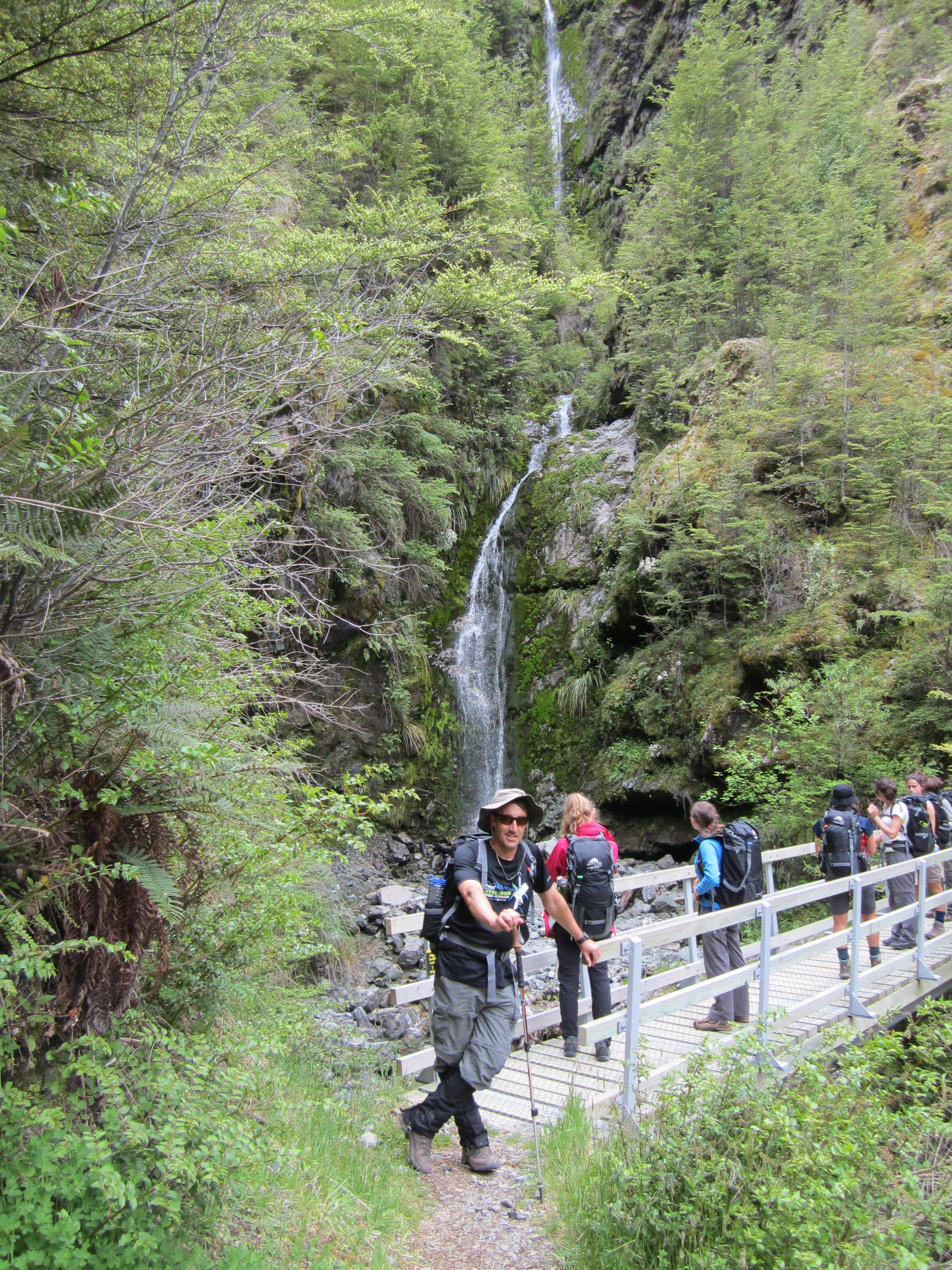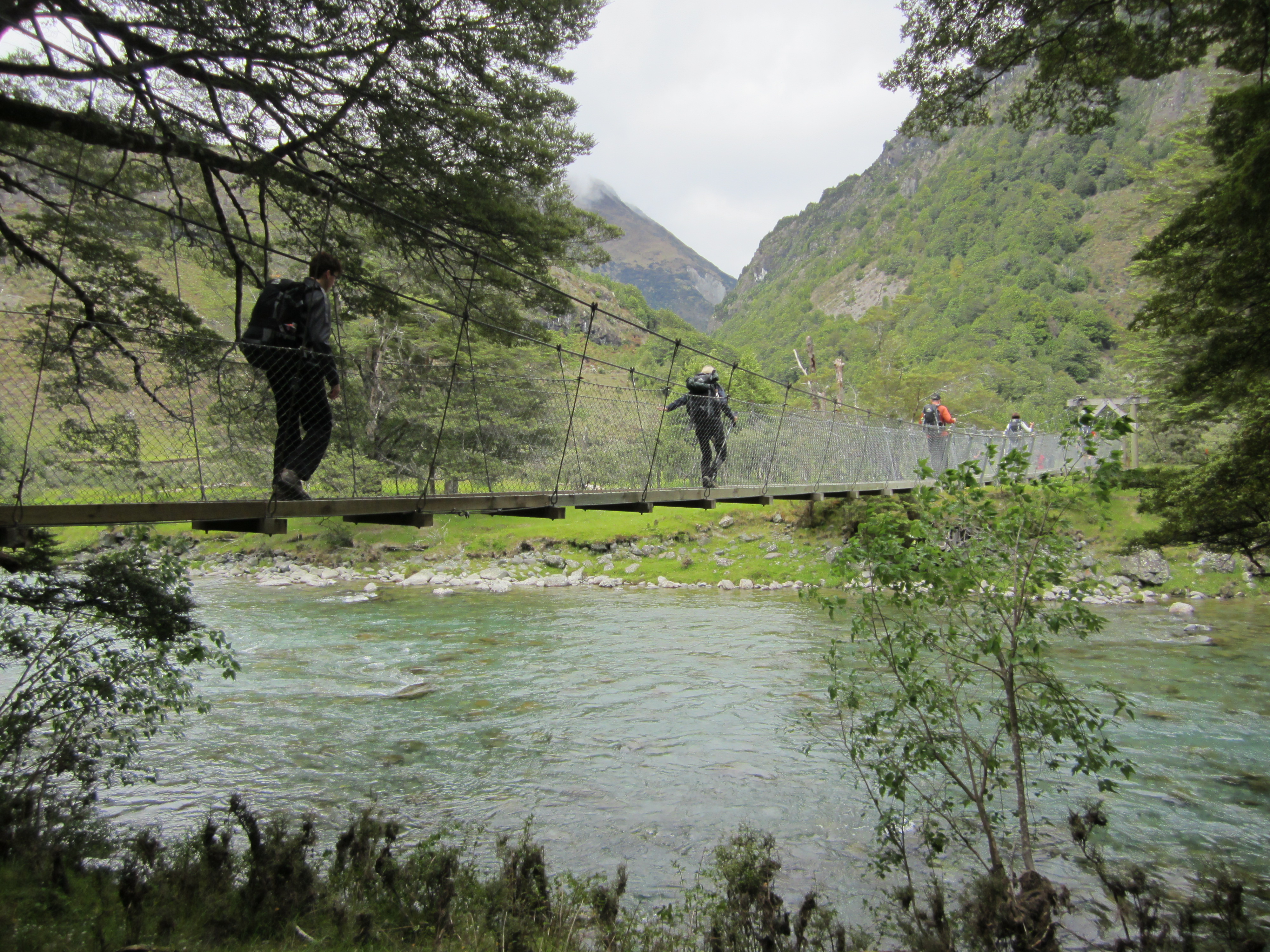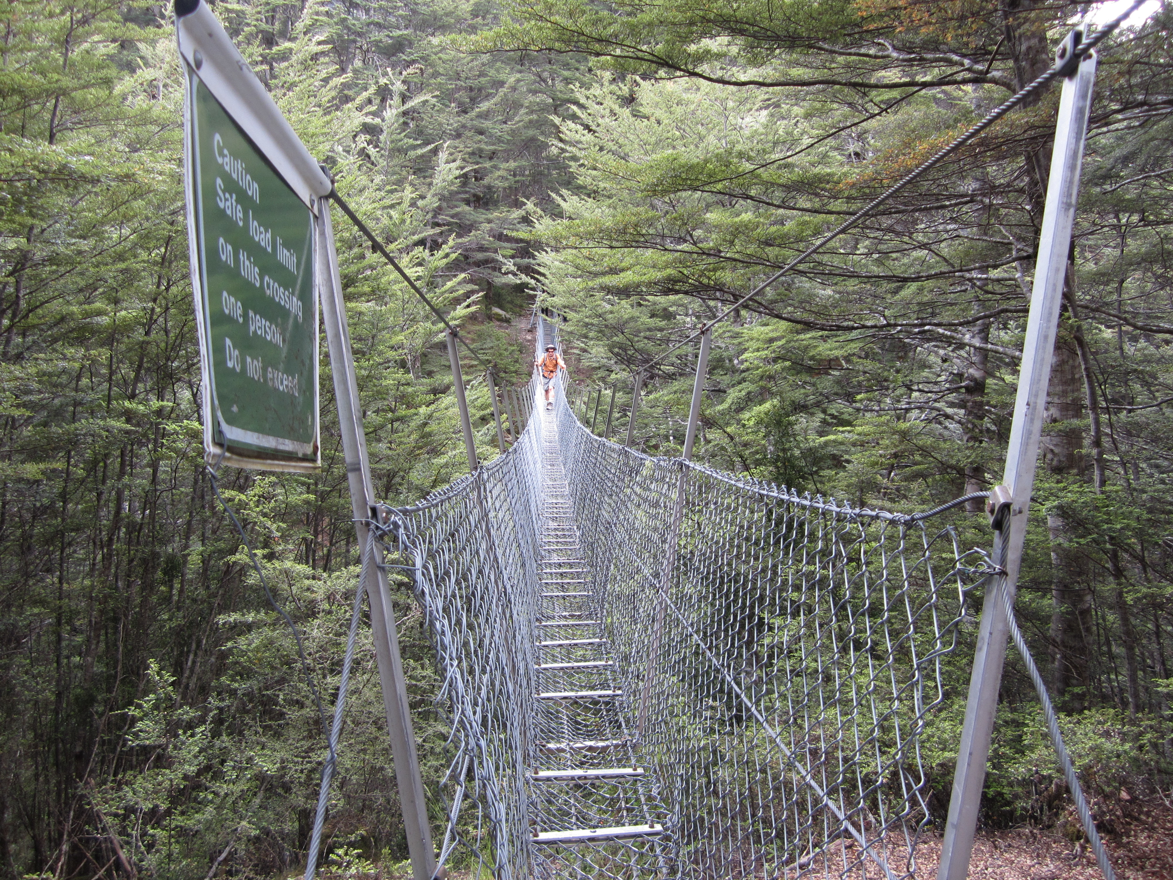 Hassuteltuani Queenstownissa muutaman päivän, tein kuuden päivän Grand Traverse -matkan Ultimate Hikesin kanssa. Ylitimme lukemattomia riippusiltoja, kuten tämän.