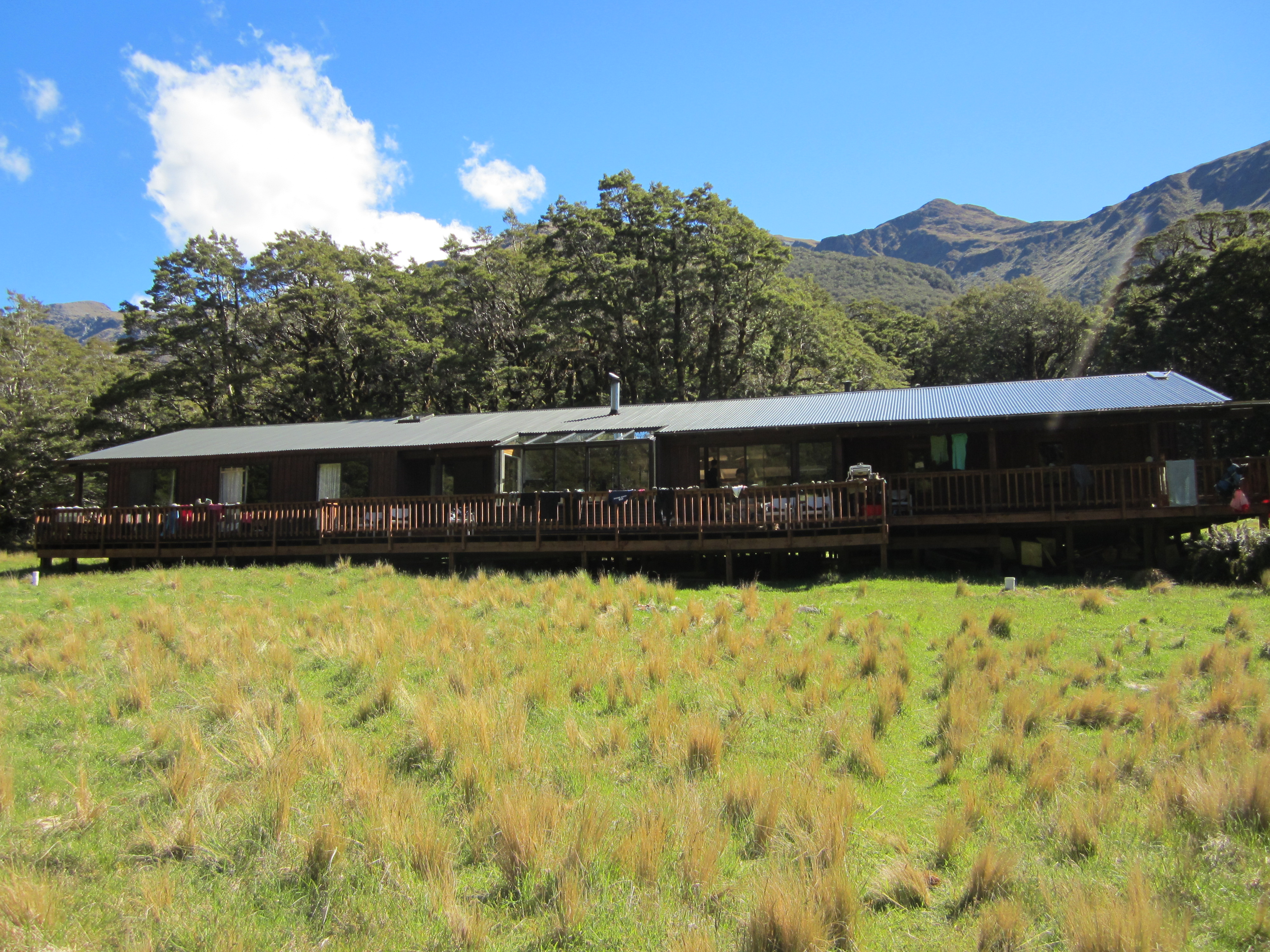 Tämä on Routeburn Falls Lodge, jossa yövyimme viimeisen yömme.