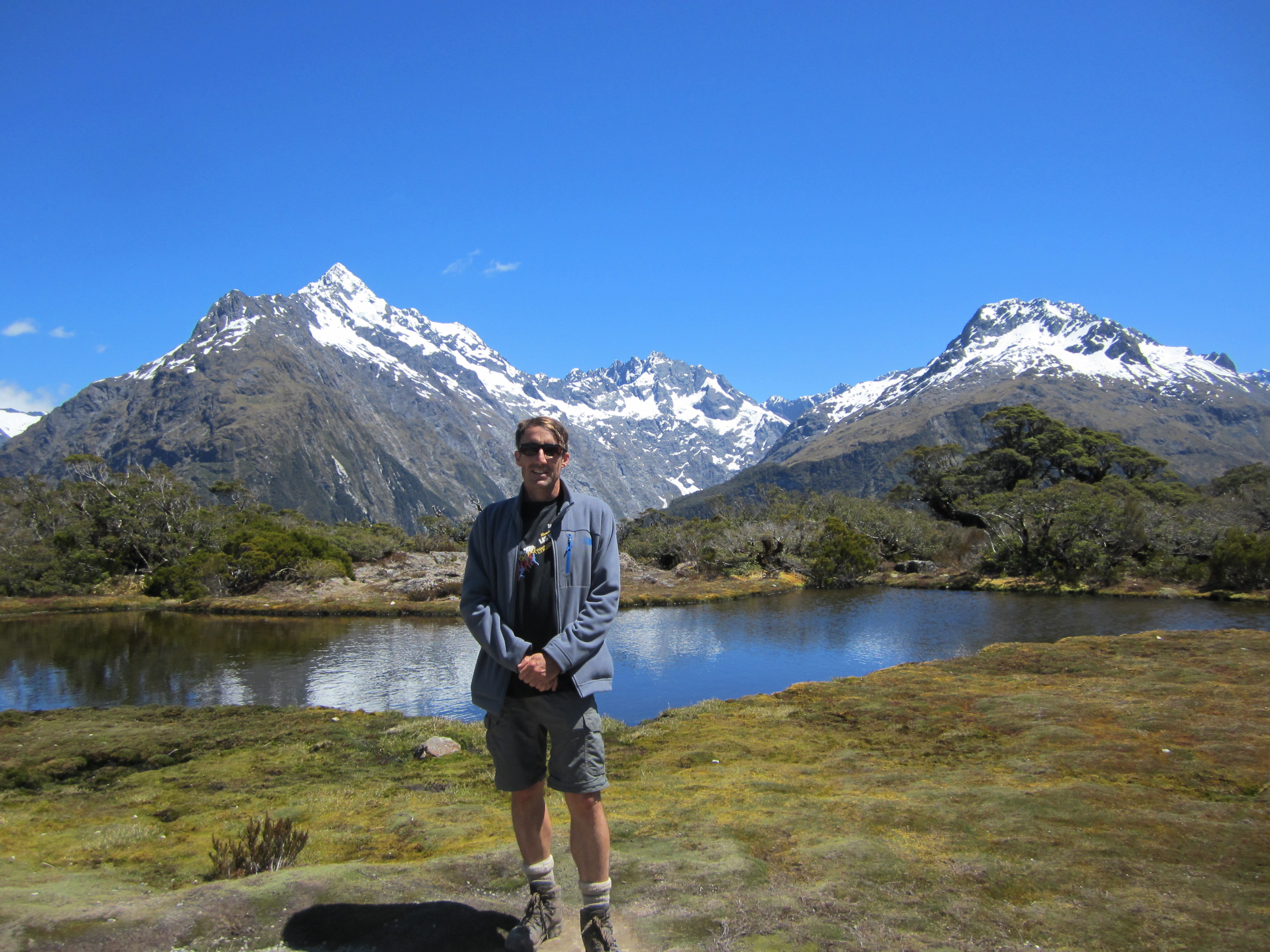 Mackenziejärvi. Luulen, että juuri täällä päin lähdimme Greenstone Trackilta ja tulimme Routeburn Trackille.