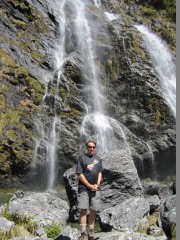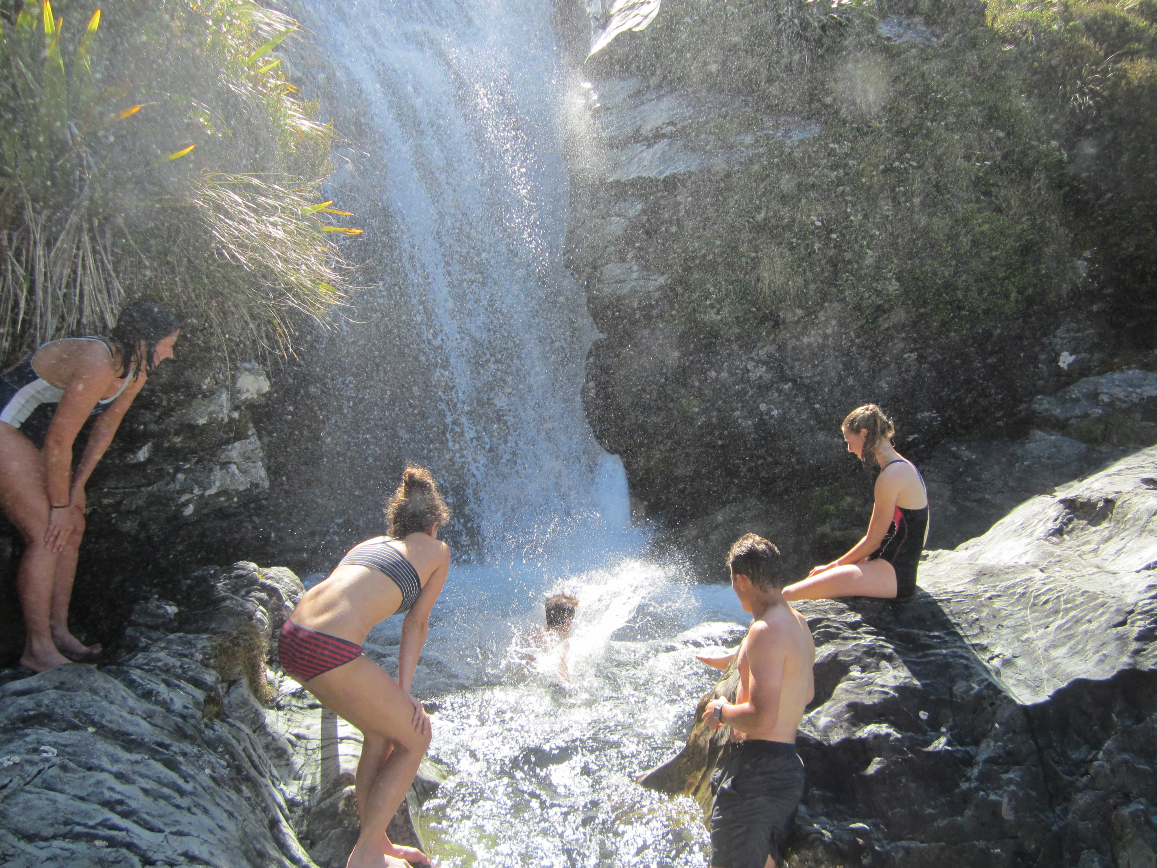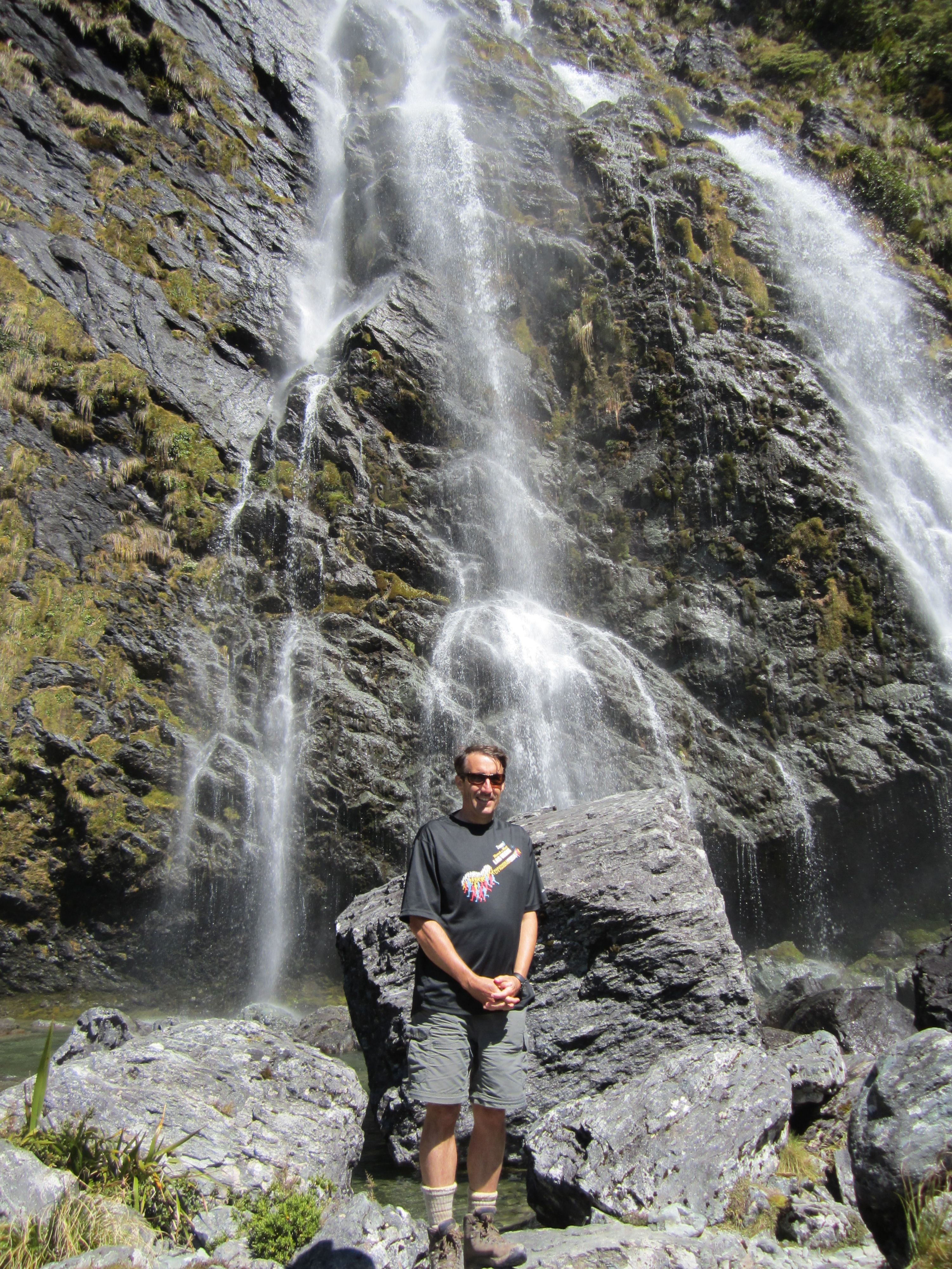 Tuossa hyppään Routeburnin putousten pohjalle. Kyllä, oli jäätävän kylmä.