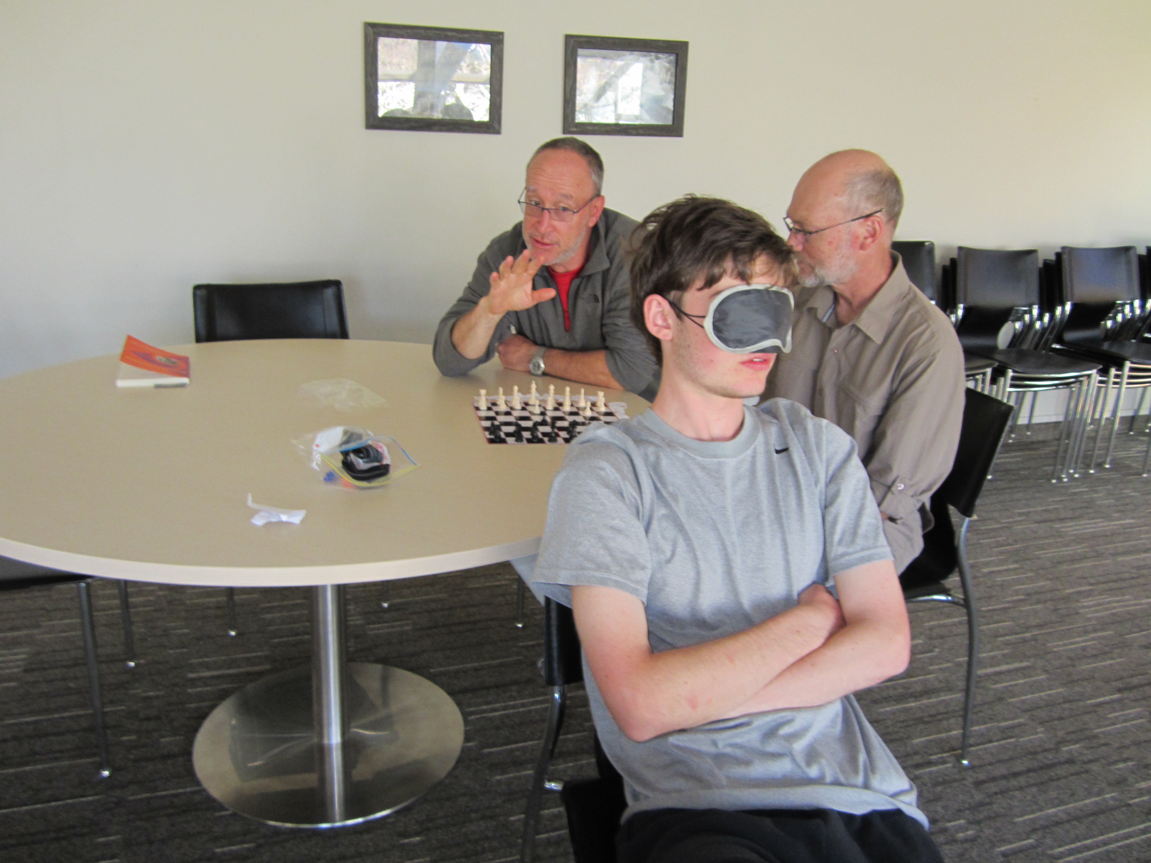 Tässä on neropoika Adam pelaamassa shakkia silmät sidottuina. Pelasin häntä vastaan aiemmin, silmät tietenkin sidottuina, mikä oli minulle nöyräksi tekevä kokemus, sanoisinko.