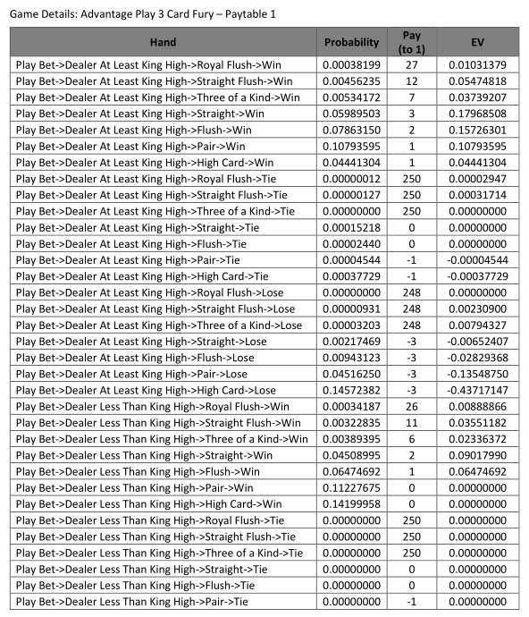 Haluan kiittää Money$uit Industriesia 3 Card Furyn matemaattisen raportin toimittamisesta minulle ja luvasta käyttää sitä tällä sivulla.