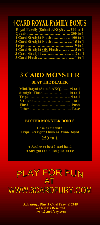 3 Card Monster -voittotaulukko 1