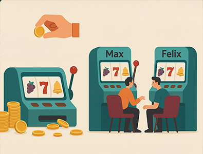 Kuvittele kaksi ystävää, Max ja Felix, jotka istuvat alas pelaamaan kolikkopelejä lauantai-iltana. Max valitsee tunnetun pelin, jonka RTP on 96,8 %, kun taas Felix – tarkistamatta yksityiskohtia – valitsee näyttävämmän pelin, jonka RTP on vain 92 %. He molemmat pelaavat 500 kierrosta 1 euron panoksella.