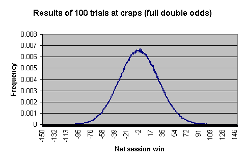 Alla oleva kaavio näyttää odotettavissa olevan nettovoiton tai -tappion 100 yrityksen eli come out -heiton aikana. Kaavion luomiseksi pelaaja panostaisi 1 dollarin pass line -peliin ja ottaisi täyden tuplakertoimen.