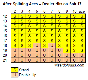 Seuraava strategia näyttää strategian ässän jakamisen jälkeen, kun ainoat vaihtoehdot ovat jäädä tai tuplata.