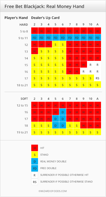 Strategia riippuu siitä, pelaatko oikealla rahalla vai ilmaisvedolla. Näiden välillä on ero, koska push-tilanne on yhtä paha kuin ilmaisvedon häviäminen, mikä johtaa aggressiivisempaan strategiaan. Seuraavat kolme taulukkoa näyttävät strategiat oikealla rahalla pelatulle kädelle, ilmaisvedolla pelatulle kädelle ja pareille.