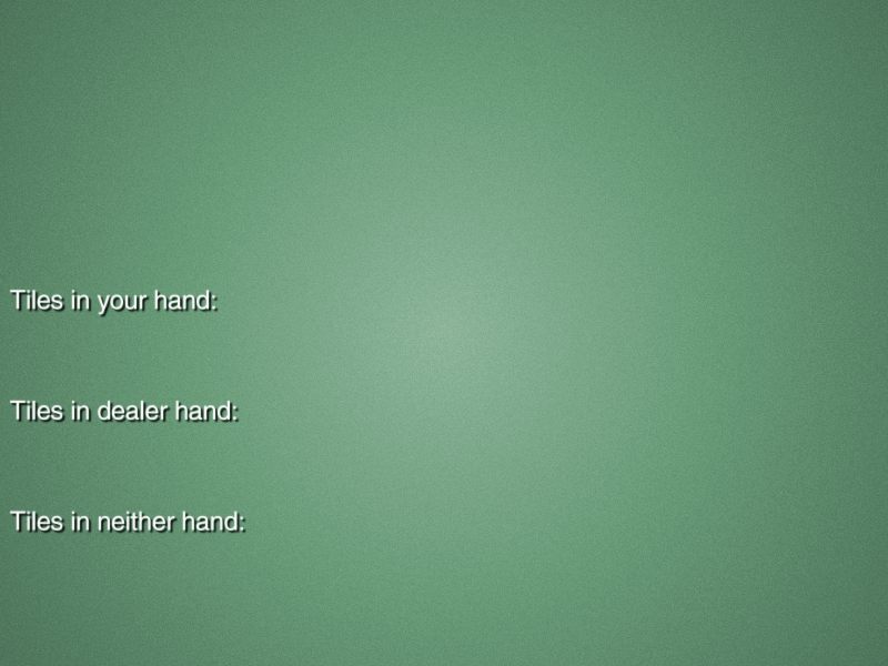 - Analysoidaksesi tiettyä kättä, jossa näit yhden jakajan laatoista, syötä neljä laattaasi ja näkemäsi jakajan laatta.