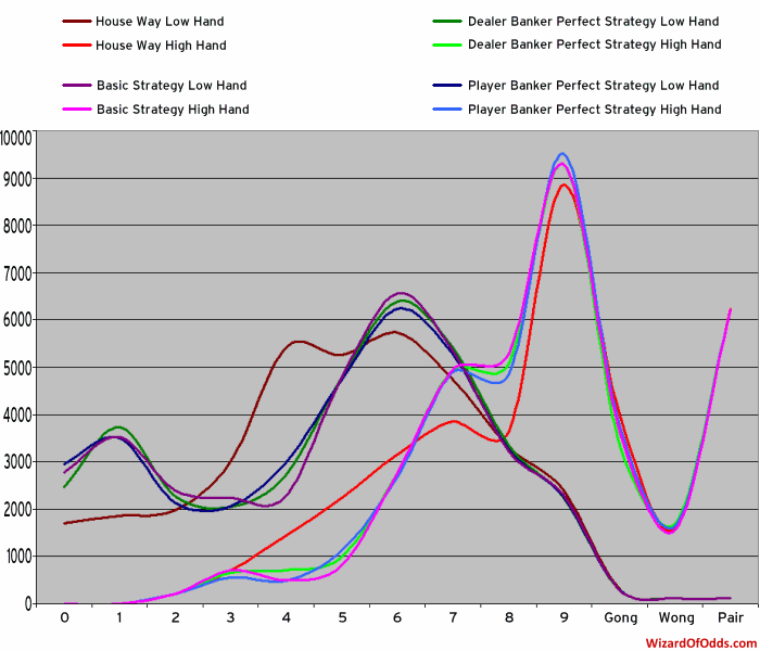 | 9 pisteen käsillä pelaa paras low-käsi, jos paras high-käsi on 6. Muussa tapauksessa pelaa paras high-käsi. | 0,0260 % | 0,0274 % |