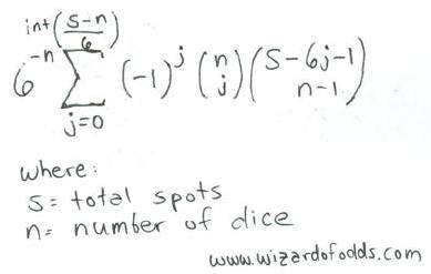 Seuraavassa on kaava s pisteen laskemiseksi n nopan yli. Kaava on otettu Richard A. Epsteinin teoksesta Theory of Gambling and Statistical Logic , kaava 5-14.