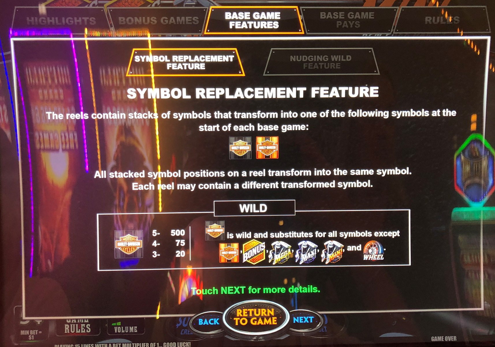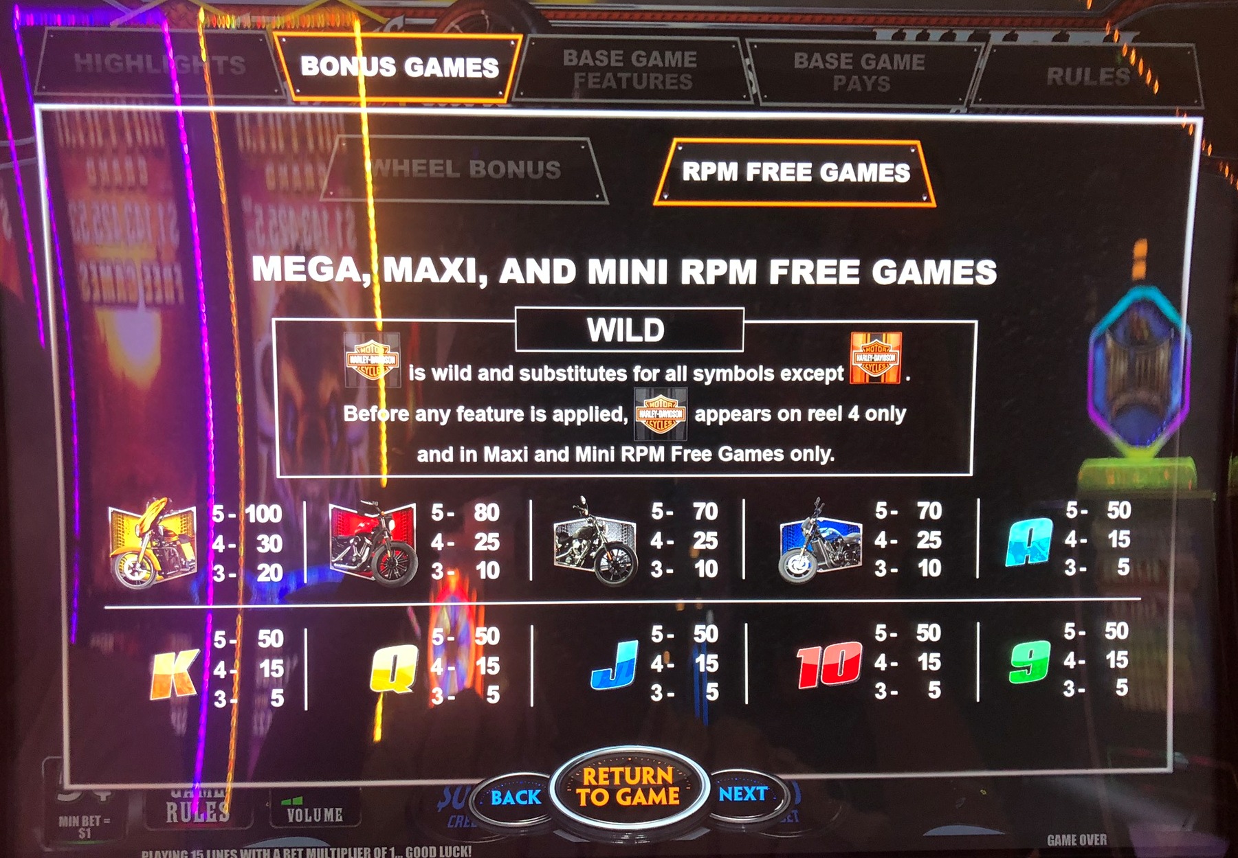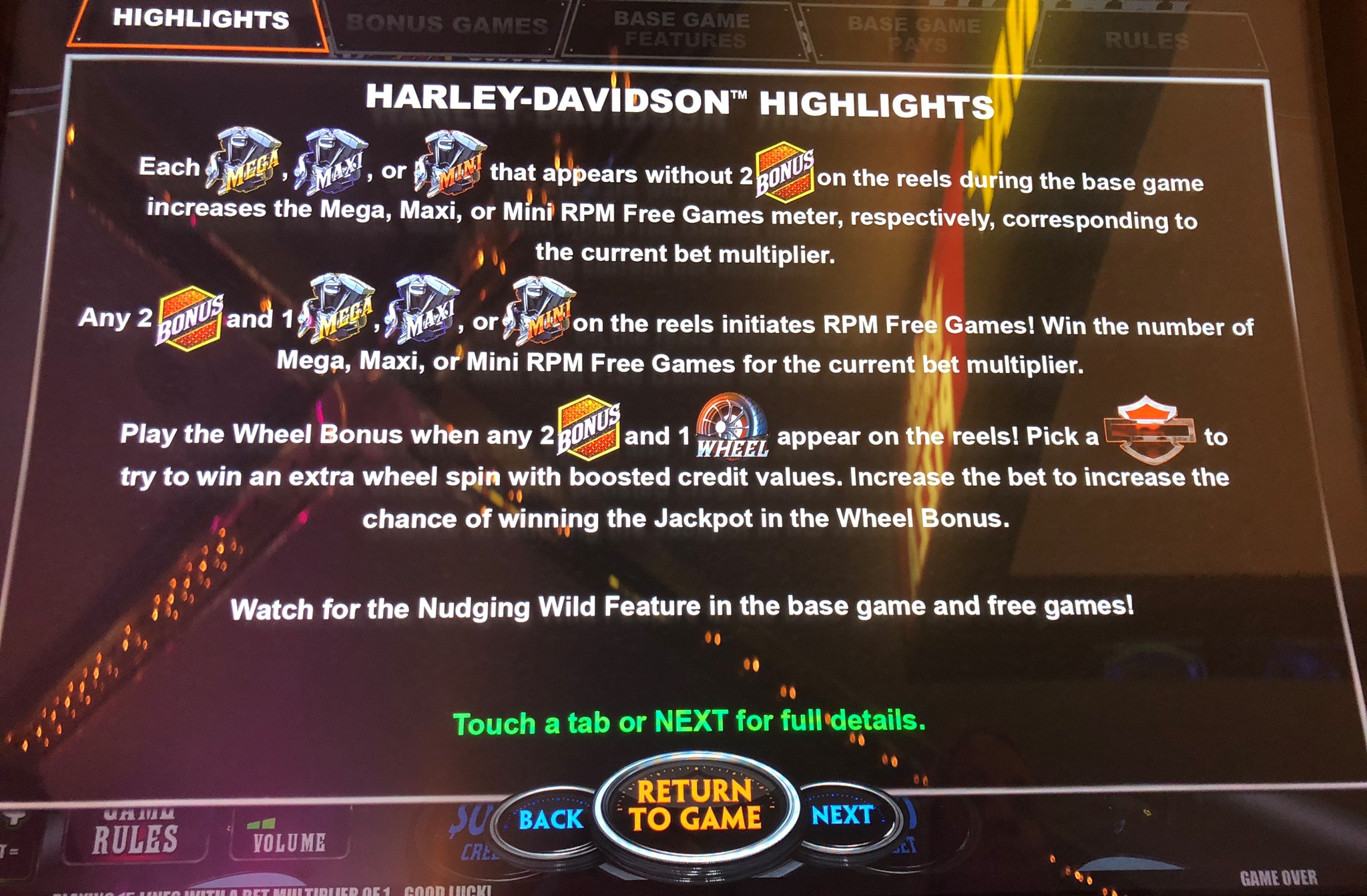 Harley Davidsonin kolikkopelit tunnetaan alalla niin sanottuina "muuttuvan tilan" peleinä. Tämä tarkoittaa, että minkä tahansa pyöräytyksen odotettu tuotto vaihtelee riippuen siitä, kuinka paljon aiemmat pelaajat ovat panostaneet peliin tai nostaneet rahaa. Tarkemmin sanottuna pelissä on ilmaiskierrosbonus, jossa ilmaiskierrosten määrä kasvaa mittarin avulla. Jos mittarit ovat riittävän korkeita, pelin odotettu tuotto on yli 100 %.