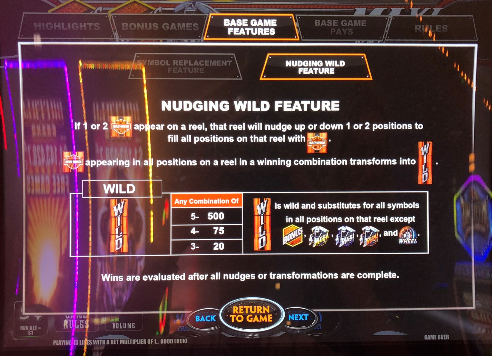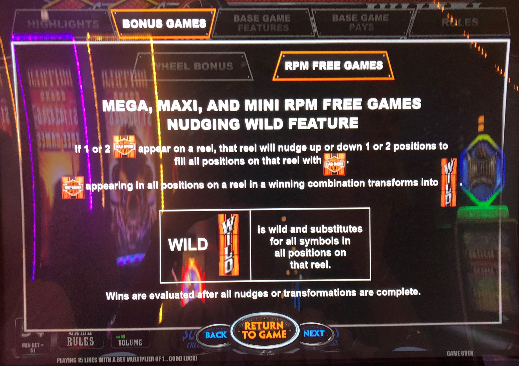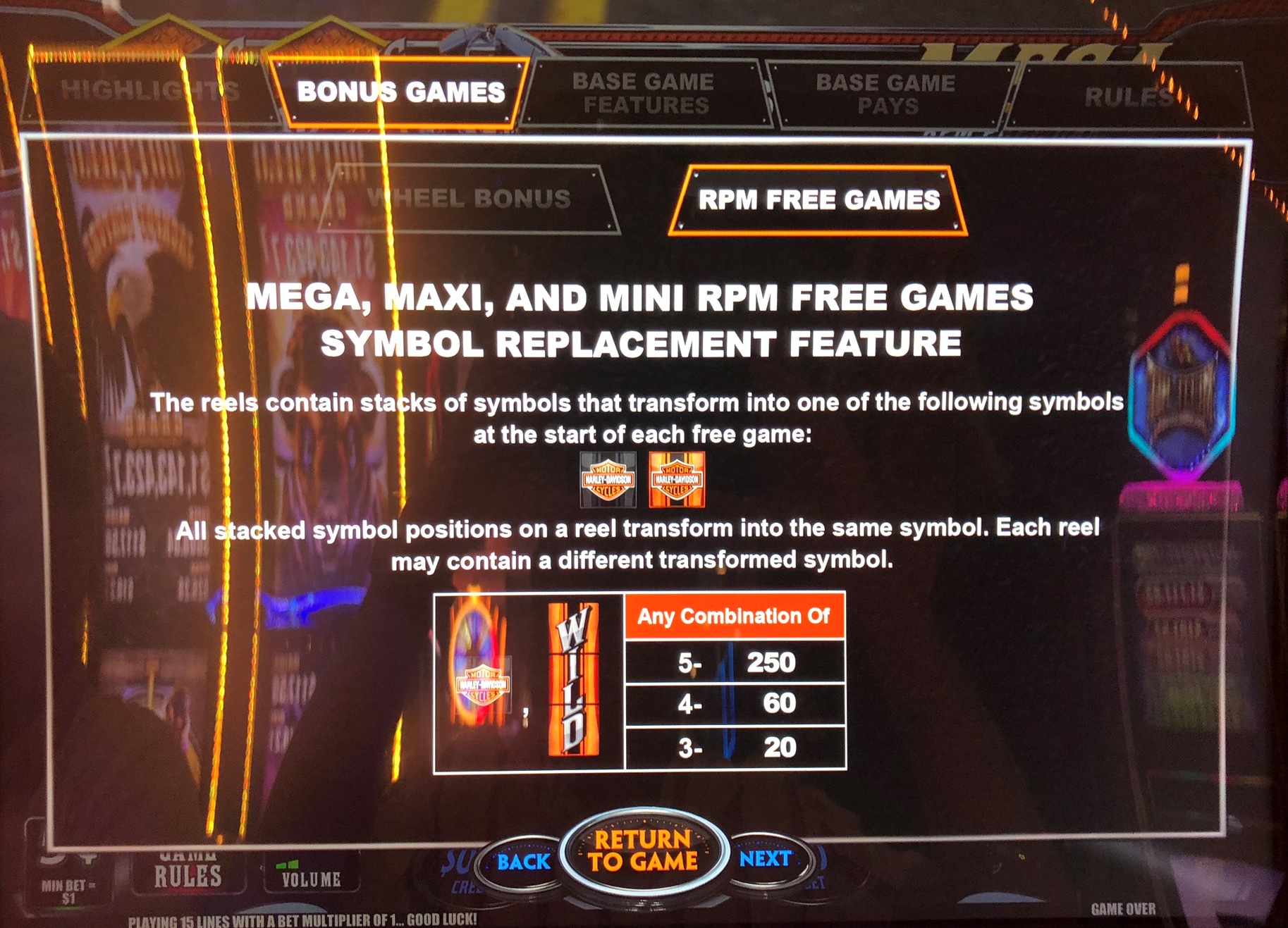Harley Davidsonin kolikkopelit tunnetaan alalla niin sanottuina "muuttuvan tilan" peleinä. Tämä tarkoittaa, että minkä tahansa pyöräytyksen odotettu tuotto vaihtelee riippuen siitä, kuinka paljon aiemmat pelaajat ovat panostaneet peliin tai nostaneet rahaa. Tarkemmin sanottuna pelissä on ilmaiskierrosbonus, jossa ilmaiskierrosten määrä kasvaa mittarin avulla. Jos mittarit ovat riittävän korkeita, pelin odotettu tuotto on yli 100 %.