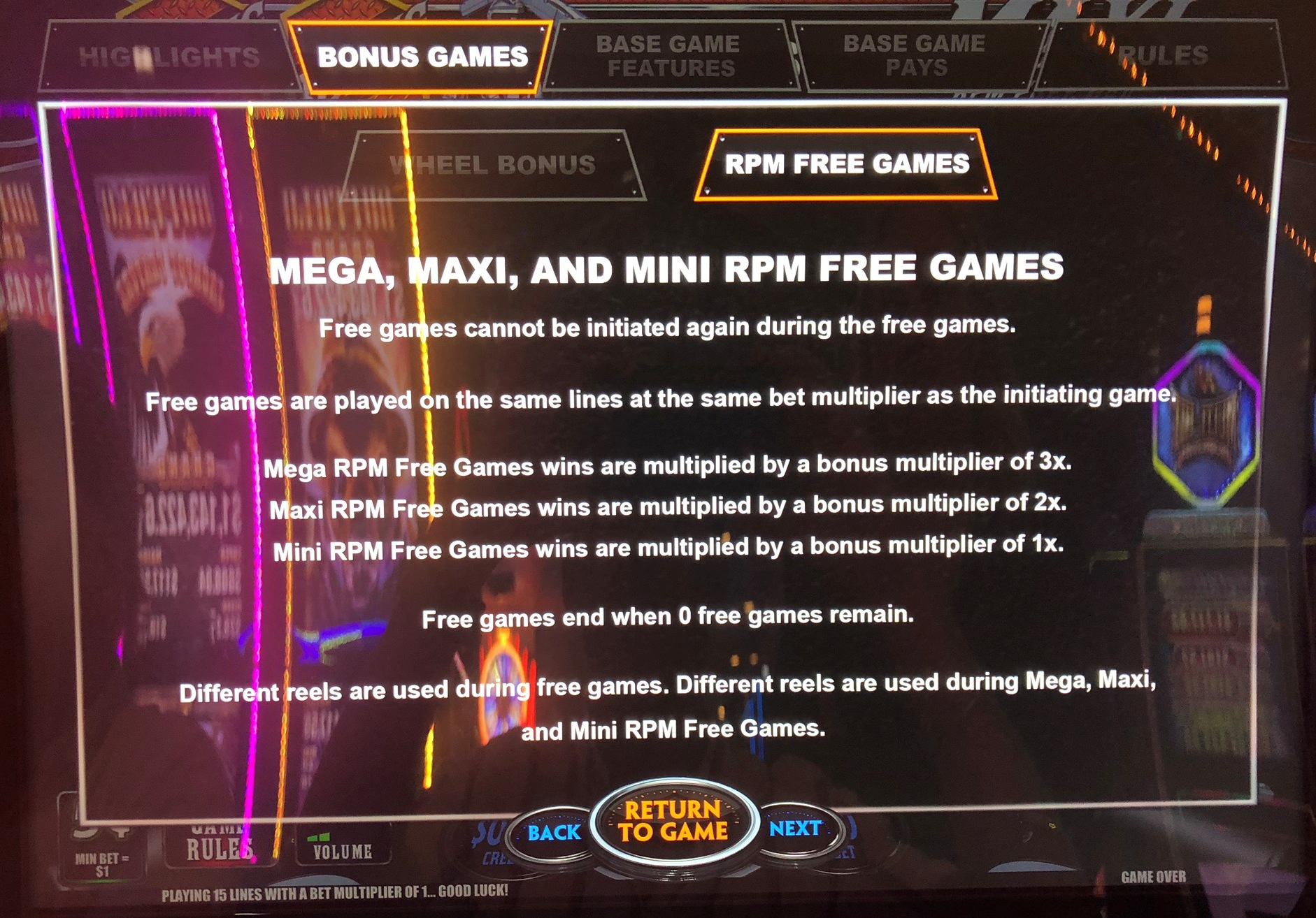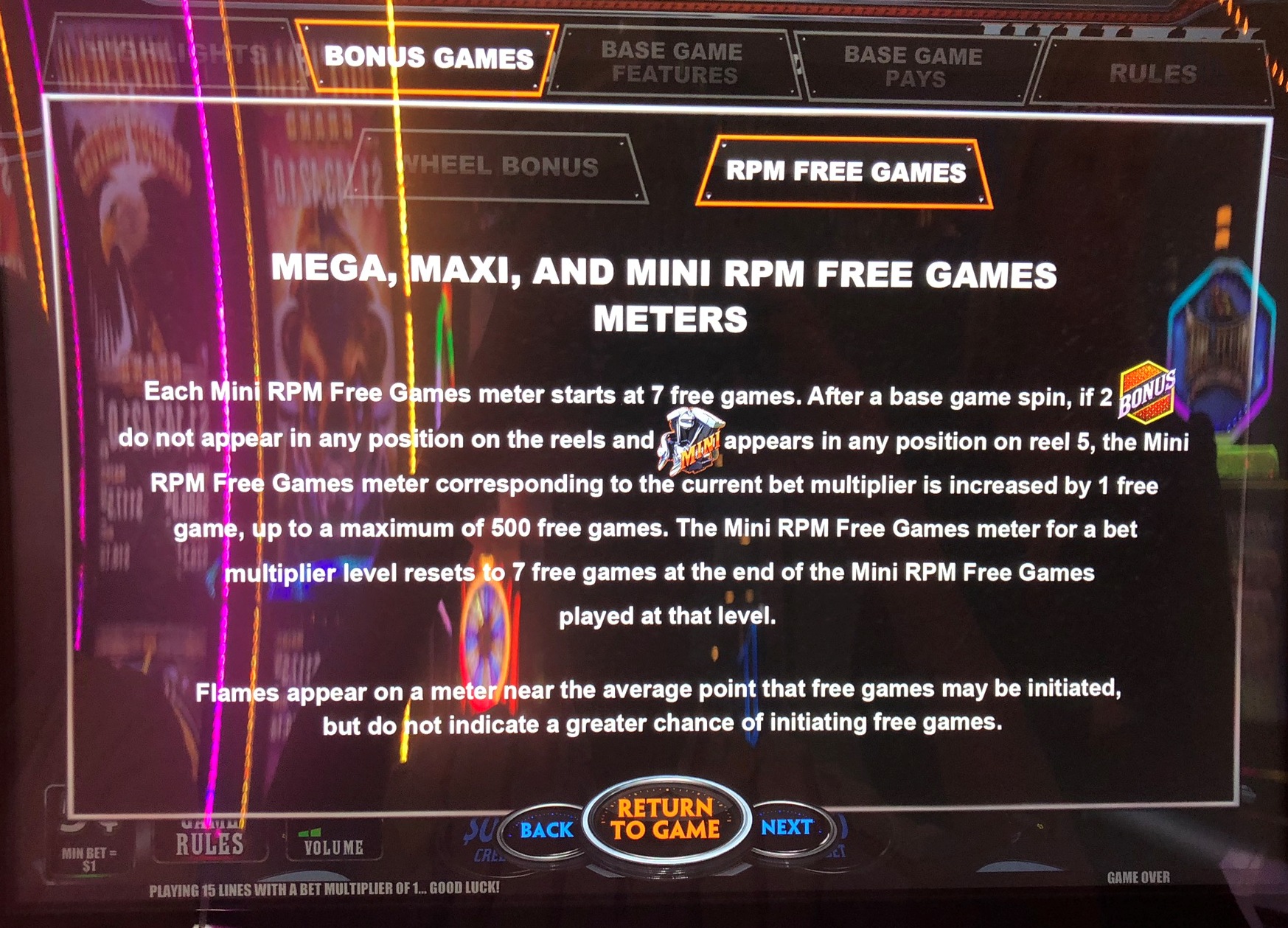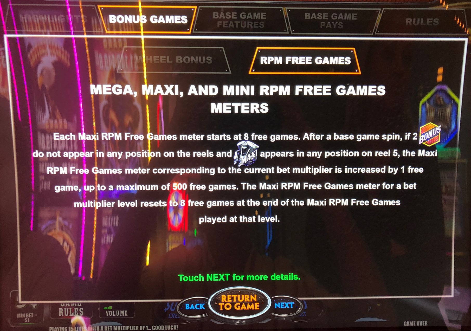 Jos pelaaja saa 0 tai 1 scatter-symbolin ja jonkin ilmaispelibonussymboleista, yksi ylimääräinen ilmaispeli lisätään kyseisen ilmaispelibonussymbolin mittariin. Esimerkiksi jos Maxi-ilmaiskierrosbonuksessa on mittarissa 20 ilmaiskierrosta ja seuraava pyöräytys tuottaa Maxi-ilmaiskierrossymbolin kiekolle 5 (ja kiekoilla 1 ja 3 on alle kaksi scatteria), Maxi-ilmaiskierrosmittari kasvaa yhdellä lukemaan 21.