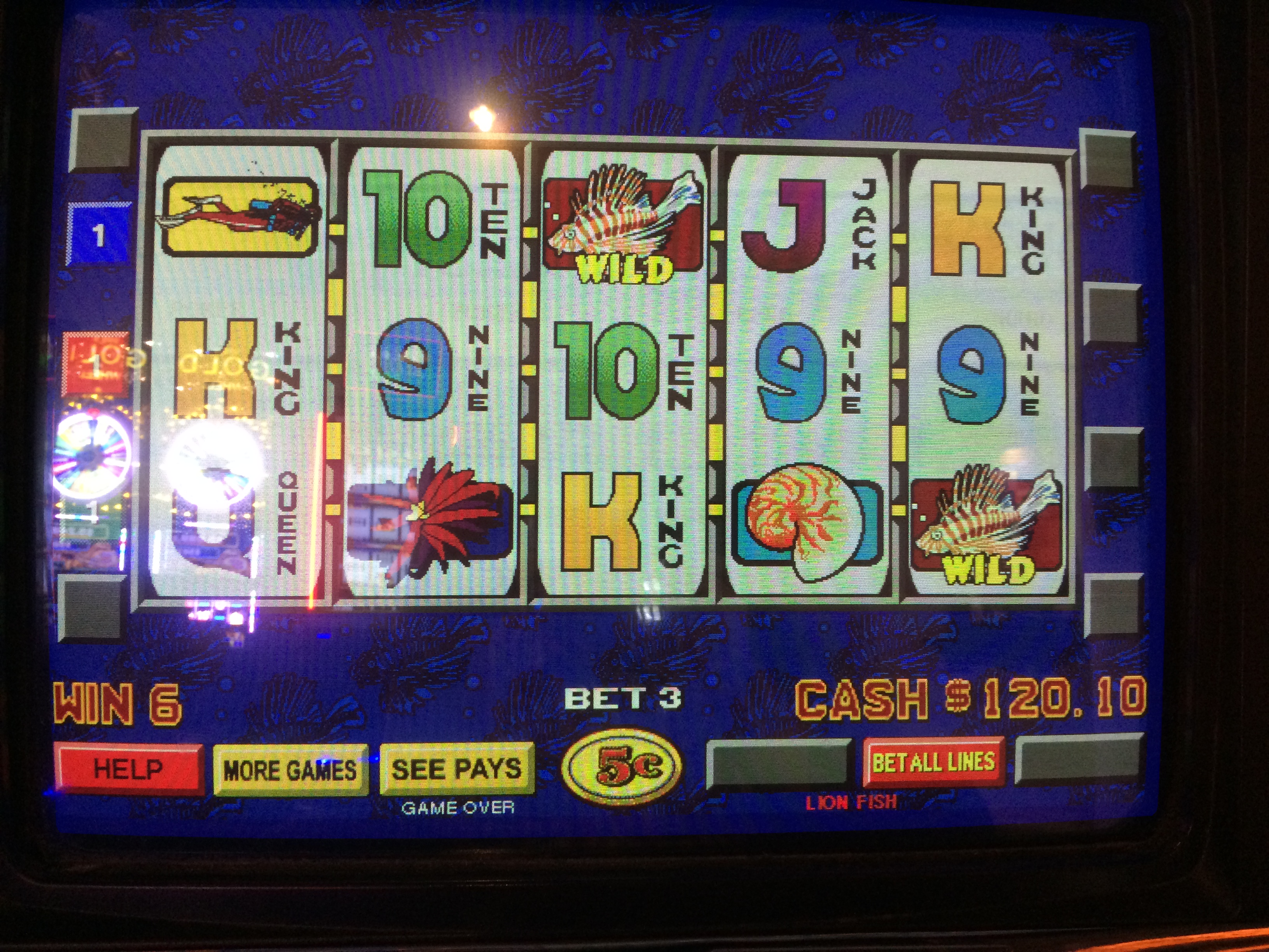 Aivan kuten aiemmin purkeilemani pelit, Jackpot Party ja Hexbreaker , valitsin Lionfishin, koska siinä ei ollut bonuspyöräytyksiä. Ainoa mysteeri oli kiekkojen purkaminen. Pelasin peliä Rampart-kasinolla Las Vegasissa. Se sijaitsi vilkkaalla alueella lähellä turvatarkastuspistettä, joten laitoin kamerani huomaamattomasti paidan taskuuni. Julkaisin YouTubessa videon pelistäni . Pahoittelen surkeaa videonlaatua.