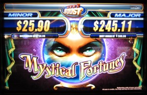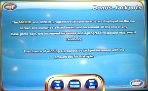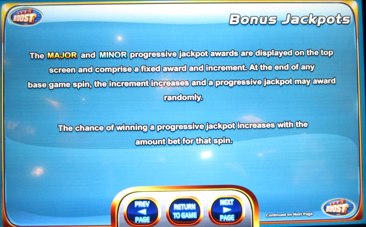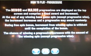 Ymmärtääkseni WMS-peleissä Minor-jättipotti alkaa 25 dollarista ja sen on saavutettava 50 dollaria. Major-jättipotti alkaa 200 dollarista ja sen on saavutettava 500 dollaria. Oman pelikokemukseni perusteella mittarin nousunopeus jokaisella mittarilla on 0,00582 kertaa voitettu raha.