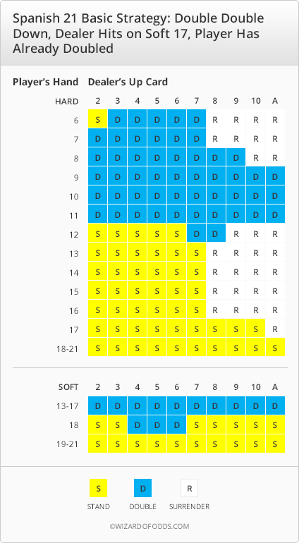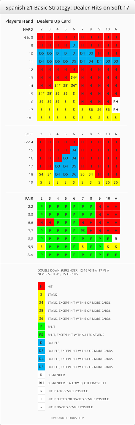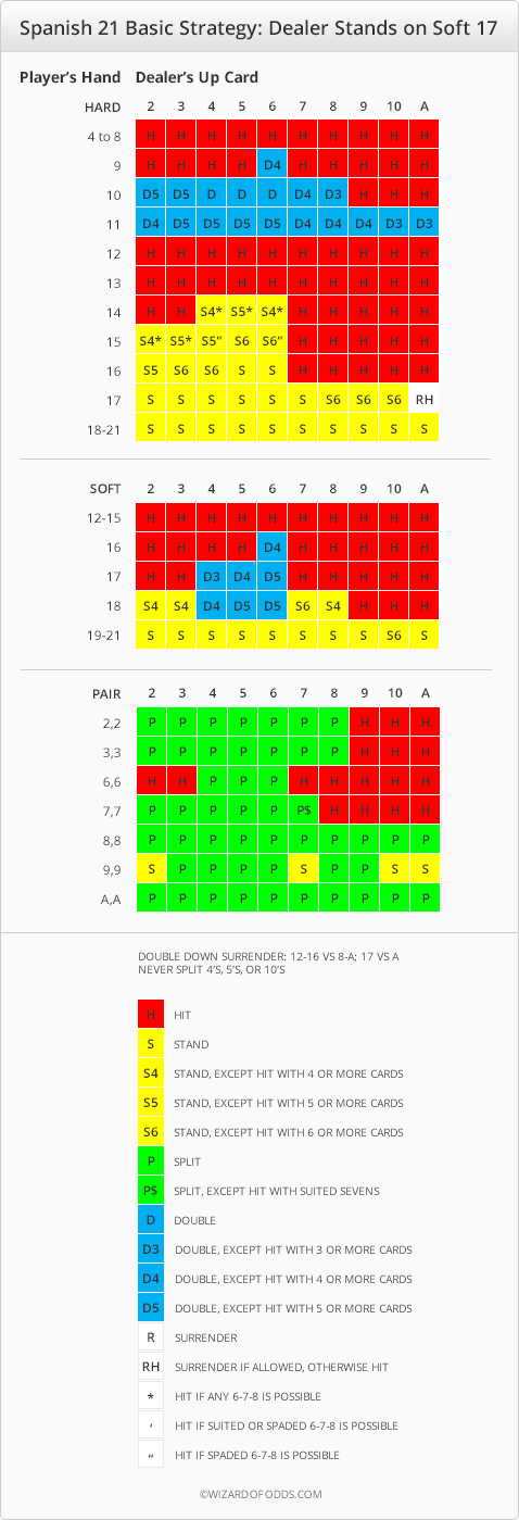 Seuraavassa on espanjalaisen 21-perusstrategiani, kun jakaja saa pehmeän 17.