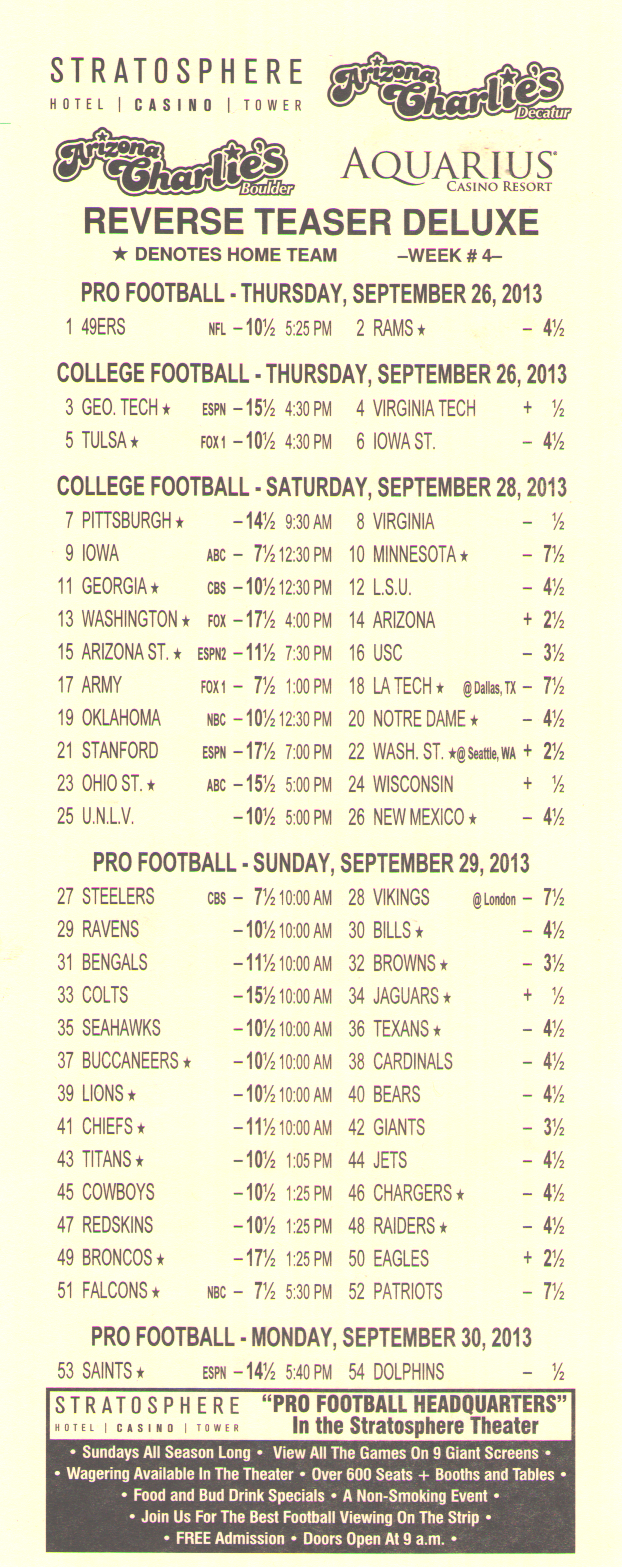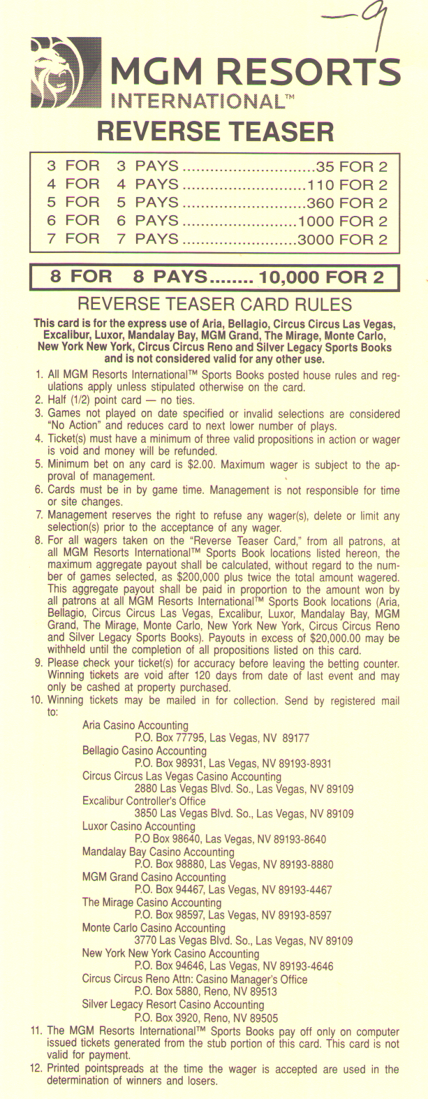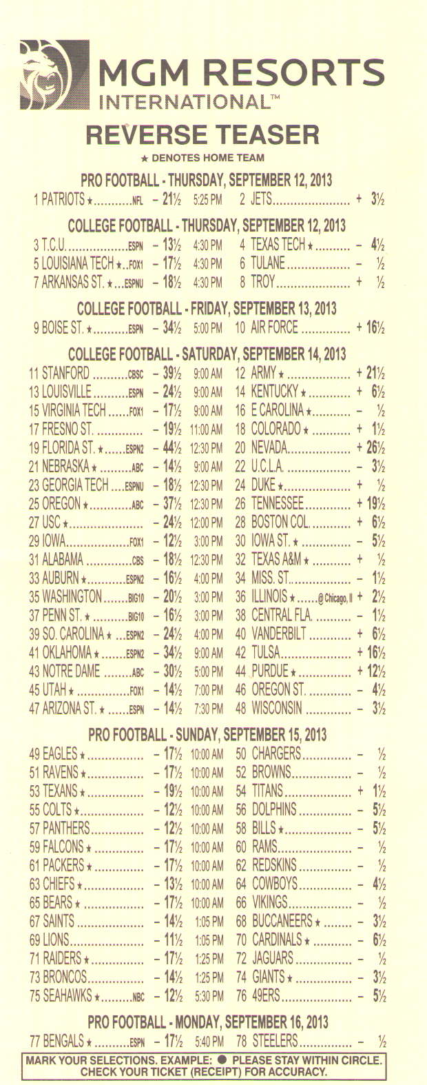 - Las Vegasin urheiluvedonlyöntikysely – Mitä kukin vedonlyöntitoimistojen perhe maksaa yhdistelmä- ja teaser-vedoista.