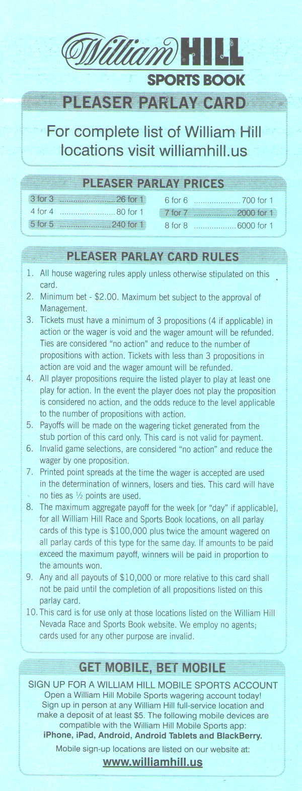 7 pisteen William Hill Pleaser -kortti — Satunnainen valitsin