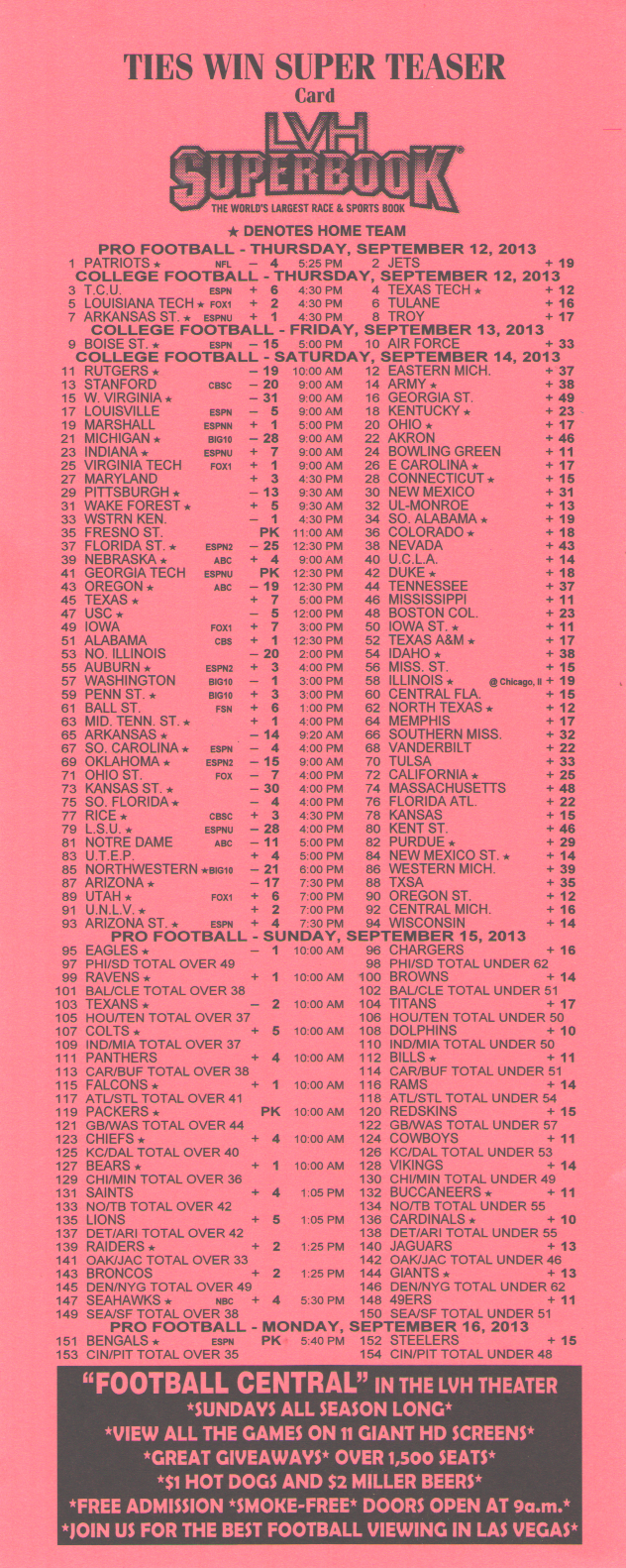 - Las Vegasin urheiluvedonlyöntikysely – Mitä kukin vedonlyöntitoimistojen perhe maksaa yhdistelmä- ja teaser-vedoista.