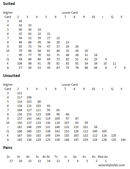 | 2 kortin käsi | Sijoitus | Todennäköisyys | Odotusarvo | Palata |
