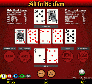 World Poker Tour All-In Hold'em on pokeripohjainen pöytäpeli, jota löytyy monista MGM/Mirage-kasinoista Las Vegasissa. Siitä on kaksi versiota, joilla molemmilla on sama nimi. Toisessa pelaaja voi korottaa jopa kolminkertaisen alkupanoksensa ja toisessa jopa kymmenkertaisen alkupanoksensa. Tällä sivulla käsitellyssä versiossa pelaaja voi korottaa jopa kymmenkertaisen alkupanoksensa. Katso World Poker Tour 3X Raise Hold'em -sivustolta lisätietoja toisesta kolminkertaisesta versiosta. Säännöt ovat hyvin samankaltaisia kuin oikeassa pokerissa, ja riski on vain 0,23 %.