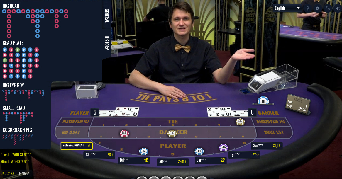 Lucky Streak tarjoaa ainoan miespuolisen jakajamme. Viiden pääpanoksen lisäksi he tarjoavat pieniä ja suuria sivupanoksia.