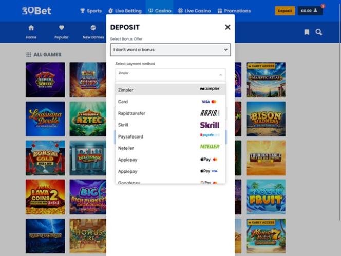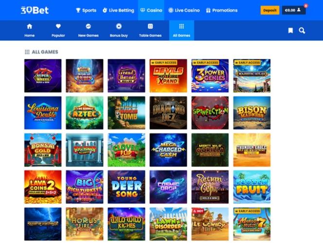 30Bet.com Casinolla on valtava pelivalikoima, josta löytyy lukuisia nettikolikkopelejä, paljon pikapelejä ja kaikkia muita kuviteltavissa olevia kasinopelityylejä. Lisäksi tarjolla on vaikuttava kokoelma maksuvaihtoehtoja sekä houkutteleva kampanjasuunnitelma ja paljon muuta.