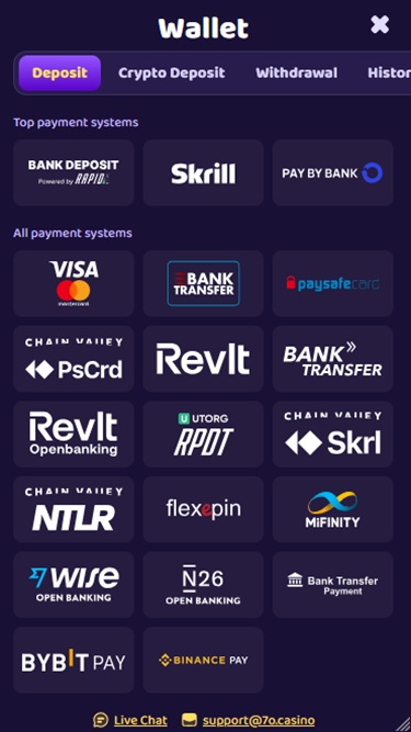 7Oasis-sivustolla voit myös pelata livekasinopelejä, joita ovat tuottaneet wizardofodds.com /software/">jotkut parhaista nettikasino-ohjelmistokehittäjistä . Jos etsit interaktiivista sisältöä, jossa on perinteinen kasinotunnelma, sinun kannattaa tutustua Lightning Rouletteen, Venice BJ 4:ään, Venice BJ 2:een, Venice Rouletteen, Bar Roulette 2000X:ään, Bar BJ 5:een, Super Stake Rouletteen, Live Rouletteen, Lightning Stormiin, Crazy Timeen, Red Door Rouletteen, Wheel of Fortuneen, Dead or Alive: Salooniin, Bet On Pokeriin, War of Betsiin, Caribbean Stud Pokeriin, Mega Balliin, Poker 6+:aan, Auto Rouletteen, Flash Rouletteen, Golden Chip Rouletteen ja muihin suosittuihin peleihin.