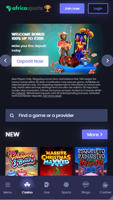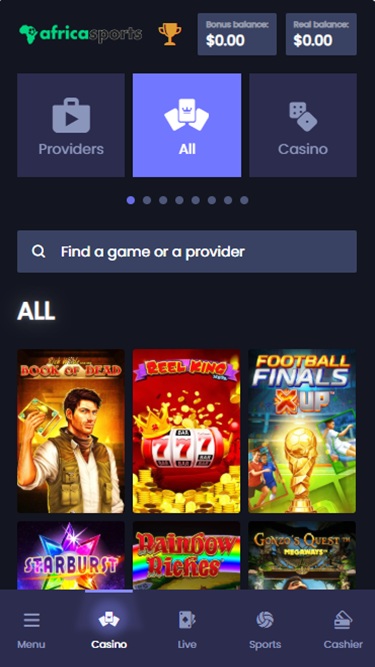 Casinexistä uudelleenbrändätty AfricaSports on nettikasino, joka esittelee vaikuttavan kasinopelien ja urheiluvedonlyöntivaihtoehtojen valikoiman pelaajille pääasiassa Etelä-Afrikasta ja Isosta-Britanniasta. Brändillä on laaja valikoima pelejä, kuten oikean rahan kolikkopelejä, live-jakajapelejä, pikavoittopelejä ja pöytäpelejä, sekä lukuisia kampanjoita ja bonuksia.