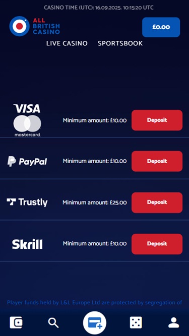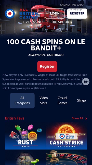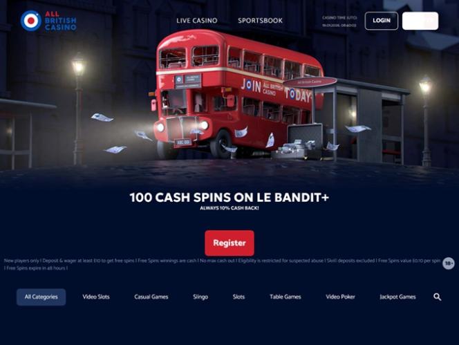 All British Casino avasi ovensa vuonna 2012, ja sen omistaa sama yritys, joka perustaa All Australian Casinon. All British Casinolla on lisenssit Maltalla ja Yhdistyneessä kuningaskunnassa, ja asiakkaat ovat ylistäneet sitä laajan kasinopelivalikoiman sekä live-jakajakasinon tarjoamisesta, jossa on useita suoratoistolähetyksiä tarjoavia pöytäpelejä.Kasinotiedot