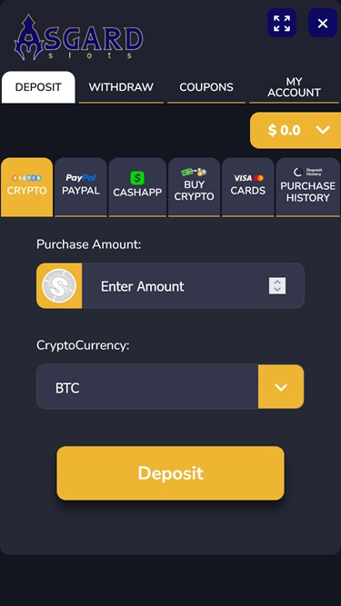 Kryptotalletuksia varten Asgard Slots tarjoaa yksinkertaisen oppaan Bitcoinin ja muiden kryptovaluuttojen käytön aloittamiseen.
