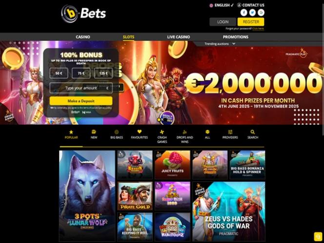 b-Bets Casinon takana on Microgaming, Net Entertainment, BetSoft, 1x2gaming, Amatic Industries, Big Time Gaming, ELK Studios, Evolution Gaming, Genesis Gaming, Habanero Systems, iSoftBet, Oryx, Play'n GO, playson, Quickspin, Rabcat, Relax Gaming, Thunderkick, Wazdan, Realistic Games, Booming Games, Pragmatic Play, Red Tiger Gaming, Red Rake Gaming, Skillzzgaming, Fantasma Games, Kalamba, Skywind, Triple Edge Studios, Northern Lights Gaming, Stormcraft Studios, Switch Studios, Electric Elephant Games, All41 Studios, Gameburger Studios, Pulse 8 Studios, Neon Valley Studios, Golden Rock Studios, Spearhead Studios, Swintt, SpinPlay Games, 7Mojos, Games Global, 2by2 Gaming, Ainsworth, Merkur Gaming, Push Gaming, Tom Horn Gaming, Gamomat, Iron Dog Studio, Foxium, Zitro, Just For The Win, Storm Gaming Technology, Apollo Games, Slingshot Studios, Golden Hero, Fortune Factory Studios, STHLM Gaming, 4ThePlayer, Gamevy, Crazy Tooth Studio, Alchemy Gaming, Plank Gaming, Snowborn Games, Hacksaw Gaming, Max Win Gaming, Gold Coin Studios, SilverBack Gaming, Peter And Sons and Eurostar Studios , ja pelejä voi pelata verkkopohjaisen alustan kautta, mikä tarkoittaa, että pelaat suoraan verkkoselaimesi kautta. Tarjolla on myös mobiilisivusto niille, jotka haluavat pelata älypuhelimillaan ja tableteillaan.