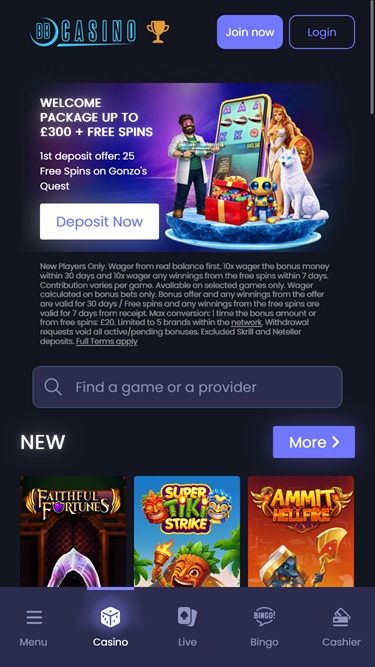 BB Casino toivottaa uudet tulokkaat tervetulleiksi huomattavalla bonuspaketilla, joka on voimassa kolmelle ensimmäiselle kasinotalletukselle.