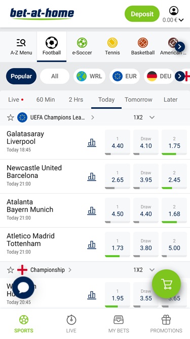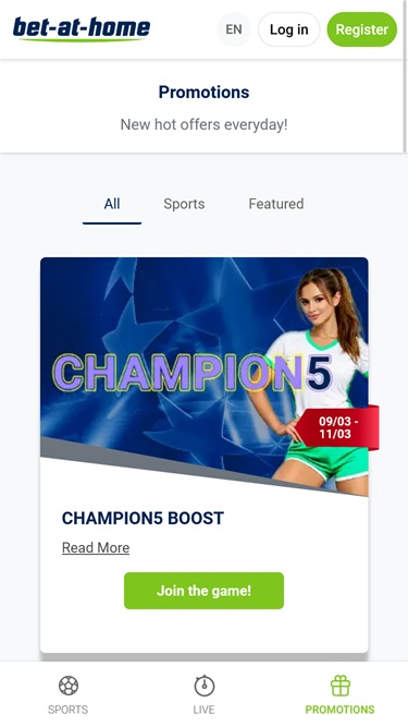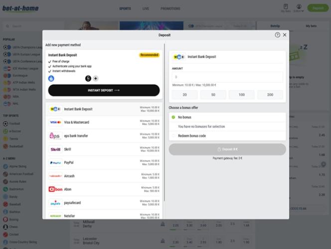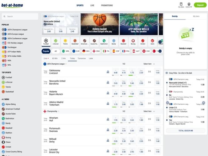 Tavallisten kasinopelien lisäksi Bet-at-home tarjoaa asiakkailleen kattavan vedonlyöntisivuston ja live-kasinon.