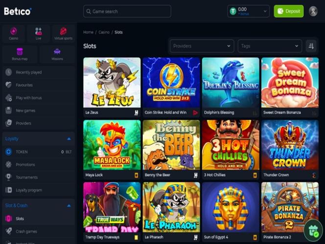 Tällä nettikasinon teemalla ja tunnelmalla varustettu sivusto miellytti meitä ensi silmäyksellä. Sivustolla liikkuminen on helppoa, varsinkin kun otetaan huomioon, että Betico on lokalisoitu useille eri kielille, kuten tšekiksi, saksaksi, englanniksi, espanjaksi, ranskaksi, unkariksi, indonesiaksi, japaniksi, puolaksi ja monille muille. Uusien ja suosikkikasinopelien löytäminen on helppoa, sillä kaikki tällä alustalla on pelaajakeskeistä.