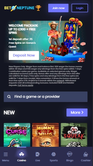 Kasino käyttää virheettömästi optimoitua alustaa, joka tarjoaa hyvän pelikokemuksen riippumatta siitä, millä laitteella verkkosivustoa käytetään. Tämä tarkoittaa, että sekä pöytäkone- että mobiilipelaajat voivat selata kaikkia saatavilla olevia pelejä. Ensi silmäyksellä BetNeptunen kokoelma näyttää vaikuttavalta, joten tutustutaanpa siihen!