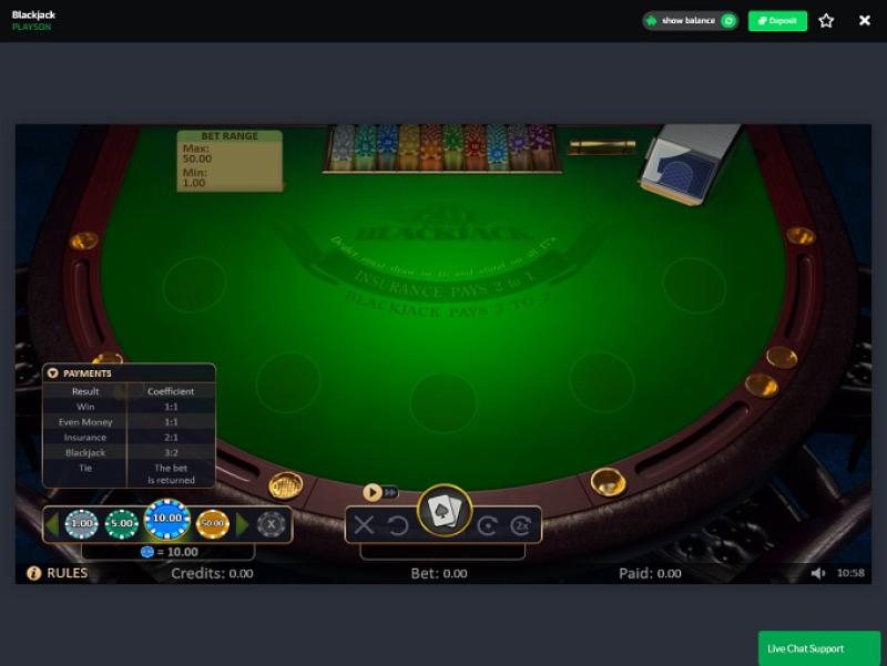 Jos olet blackjackin pelaaja, valittavana on useita vaihtoehtoja, kuten eurooppalainen ja klassinen versio. Saatavilla on myös blackjackin muunnelmia, kuten Double Exposure, Pontoon, Spanish 21 ja Super Fun 21.