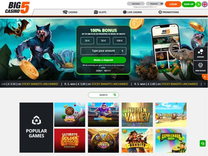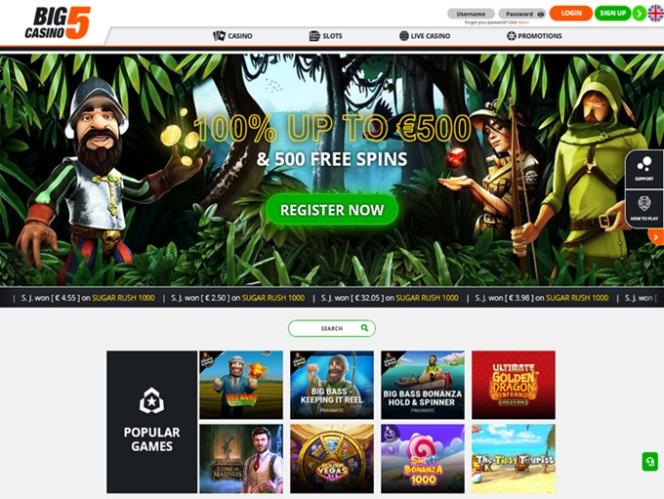 Big5 Casino on Condor Malta Ltd:n vuonna 2018 perustama nettivedonlyöntisivusto. Sivustolla on laaja valikoima pelejä tunnetuilta kehittäjiltä sekä urheiluvedonlyöntisivusto, live-jakajakasino ja paljon muuta. Tämä kaikki kuulostaa hyvältä, mutta luottamusongelmia on käsiteltävä, koska sivustolla on joitakin saalistushinnoitteluehtoja. Tästä huolimatta tämä kasino osoittaa paljon sydäntä, ja jos pystyt noudattamaan ehtoja, tämä on loistava sivusto tutustuttavaksi.