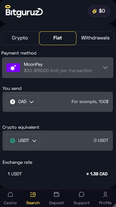 Yläreunan hakupalkin avulla voit nopeasti etsiä mitä tahansa kasinon 6 000 pelistä , kun taas oikeassa yläkulmassa oleva lompakko vie sinut talletusosioon.