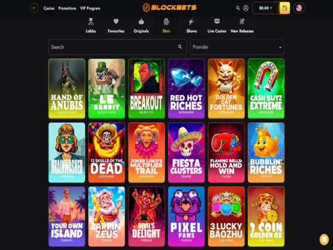 BlockBets tarjoaa jäsenilleen yli viisituhatta nettikolikkopeliä kokeiltavaksi. Kasinon valtavassa kolikkopelikokoelmassa on pelejä, joissa on suosittuja teemoja, huippuluokan grafiikka ja realistiset, upeasti suunnitellut äänitehosteet , ja niissä kaikissa on jännittäviä palkitsemisjärjestelmiä, kuten bonuspyöräytyksiä, kertoimia, wild-symboleita jne.