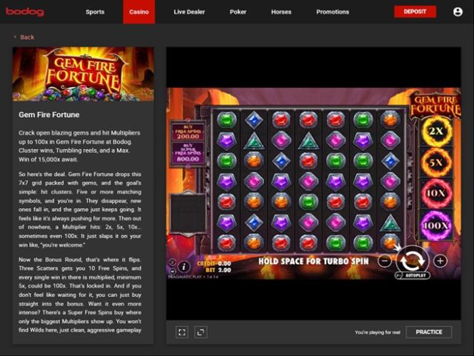 Mutta Bodog on erilainen. Heillä ei ole lainkaan ponnahdusikkunoita, ja heidän harjoituspelinsä pelataan suoraan selaimessasi ilman lataamista tai rekisteröitymistä. Sinun ei tarvitse edes antaa sähköpostiosoitettasi. Se ei voisi olla yksinkertaisempaa: vain yksi klikkaus ja pelaat peliä.