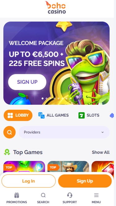 Tällä uhkapelibrändillä on ihana pastelliväreissä suunniteltu alusta. Käyttöliittymä saattaa vaikuttaa minimalistiselta, mutta se on erittäin hyvin organisoitu ja täysin toimiva. Tietokoneille ja mobiililaitteille optimoitu BOHO tarjoaa pelaajille hyvän pelikokemuksen riippumatta siitä, mitä laitetta he valitsevat suosikkipeliensä pelaamiseen.