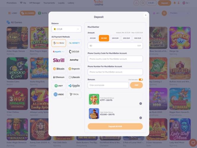 BOHO-kampanjaosio tarjoaa varsin houkuttelevia bonuksia. Uudet rekisteröityneet jäsenet voivat luottaa anteliaaseen tervetuliaispakettiin, joka sisältää bonuksia kolmelle ensimmäiselle talletukselle.