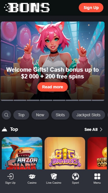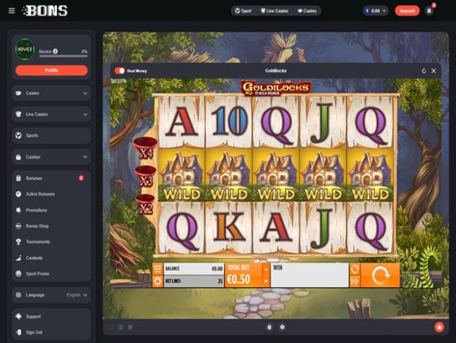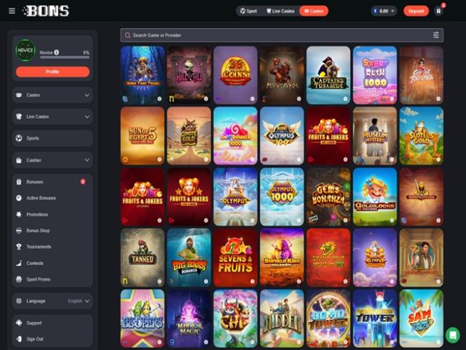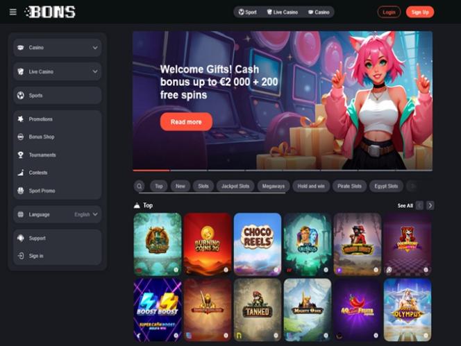 Kasino on suunnattu pääasiassa pelaajille Japanista, Etelä-Koreasta ja Intiasta, ja sitä pyörittävät jotkut iGaming-jättiläisistä. ”Bons” tulee sanoista ”Bet On Sports”, mutta kasinon tarjonta on varsin vaikuttava. Vedonlyöjät voivat kokeilla pelejä valtavasta pelivalikoimasta, johon kuuluu yli 4000 nettikolikkopeliä . Lisäksi vedonlyöjät voivat luottaa yhtä mahtaviin live-jakaja- ja kasinopeliosioihin.