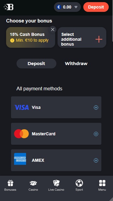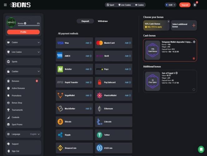 Kasinon kassa tukee laajaa valikoimaa maksutapoja, mukaan lukien kryptovaluuttoja, joten tallettaminen tai kotiuttaminen Bons Casinolta ei ole lainkaan ongelma riippumatta siitä, mihin uhkapelihallintoon kuulut.