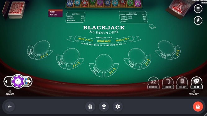 | Blackjack Surrender | Jalusta | Ei | Mitkä tahansa 2 | 1 | Ei | - | - | Kyllä | 99.65% | 6 | Ei |