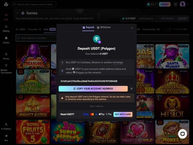 Tämä kasino on yksinomaan kryptopohjainen alusta, mikä tarkoittaa, että jokainen veto on läpinäkyvä ja todennettavissa ketjussa. Lisäksi sitä tukee Azuro – johtava hajautettu vedonlyöntiprotokolla, joka varmistaa luottamuksen ja luotettavuuden.