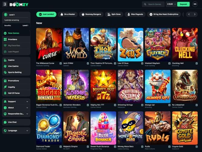 Boomzy Casinolla on tuhansia jännittäviä pelejä arvostetuilta iGaming-alan jättiläisiltä, kuten Evolution Gaming, Relax Gaming , Nolimit City, Endorphina, Hacksaw Gaming ja Pragmatic Play, muutamia mainitakseni.