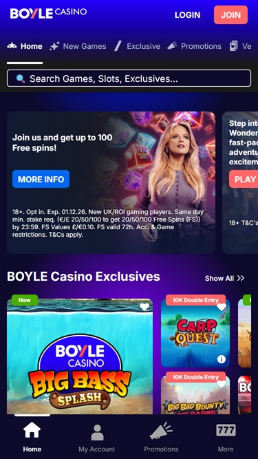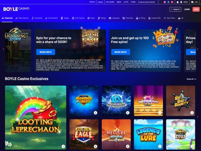 KeskimäärinBoyle on vanha vedonlyöntibrändi Isossa-Britanniassa, jossa on myös kolikkopelejä. Sivusto on melko vaikea tietokoneellasi, sen lataaminen kestää vuosia, etenkin vanhalla laitteella. He tarjoavat sivustollaan hyviä tarjouksia, mutta en ole saanut sähköpostiviestejä tältä kasinolta aikoihin.